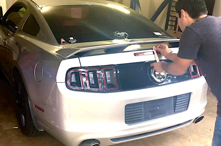 Adding-Masking-Tape-for-Center-of-the-car-rear-part-mustang